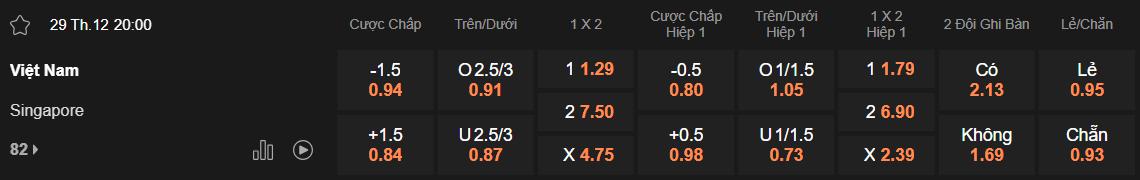 Soi kèo Việt Nam vs Singapore ngày 29/12