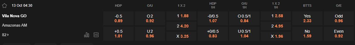 Tỷ lệ kèo Vila Nova vs Amazonas