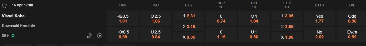 Soi kèo hiệp 1 Vissel Kobe vs Kawasaki Frontale