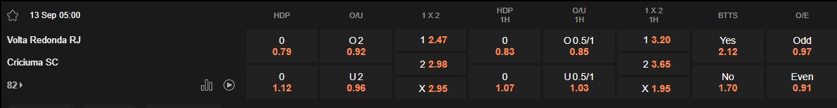 Soi kèo hiệp 1 Volta Redonda vs Criciuma