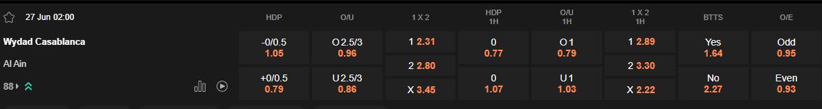 WAC có thói quen nhập cuộc chủ động. Việc ghi bàn sớm để kiểm soát thế trận là điều thường thấy từ đội bóng này. Trong 4 trận gần nhất, họ đã ghi bàn trong hiệp 1 ở 2 trận. Trong đó phải kể đến bàn thắng sớm của họ trước Juventus. Ngược lại, Al Ain để lọt lưới tới 7 bàn trong hiệp 1 ở 2 trận vòng bảng – một con số đáng báo động. Việc phòng ngự thiếu tập trung từ đầu khiến họ thường xuyên rơi vào thế bị động và dễ thủng lưới sớm. Trước sự áp đảo về thế trận và tinh thần của đội chủ nhà, kịch bản WAC dẫn bàn sau 45 phút đầu tiên là rất dễ xảy ra.