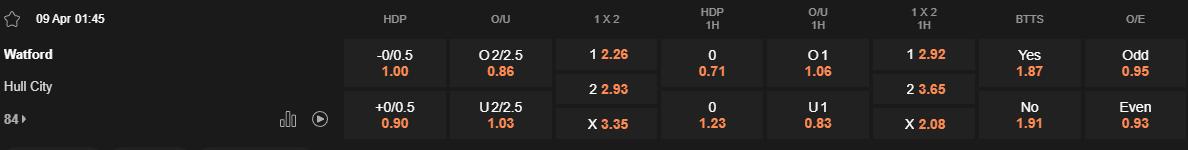 Trong khi đó, Watford đang chìm trong khủng hoảng phong độ. Trận thua 1-2 trước Bristol City đã là thất bại thứ 3 trong 5 vòng gần nhất, với chỉ 1 chiến thắng trong chuỗi trận này. Tỷ lệ vượt ải thành công ở cửa cược của họ cũng chỉ vỏn vẹn 20% trong 5 lần mở kèo gần nhất. Chính vì thế, lựa chọn Hull City +0.25 hoặc đồng banh (0) là phương án khả dĩ với lợi thế phong độ và tâm lý thoải mái hơn của đội khách.