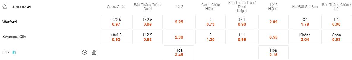 Swansea với tinh thần và phong độ tốt đã giúp bet thủ thắng kèo liên tục trong 2 lần mở cược gần đây. Sự tự tin và khả năng tấn công của đội bóng xứ Wales có thể giúp họ giành lợi thế trong hiệp 1. Đặc biệt khi đối mặt với một Watford đang gặp khó khăn trong việc tìm kiếm kết quả tích cực gần đây.