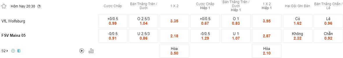 Tỷ lệ kèo Wolfsburg vs Mainz