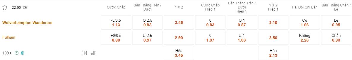 Fulham sau chiến thắng ấn tượng trước Brighton sẽ bước vào trận đấu với tinh thần cao. Với mong muốn giành lấy ba điểm, Fulham có thể sẽ tấn công mạnh mẽ ngay từ đầu để tạo ra áp lực lên hàng phòng ngự của Wolves. Cửa cược của họ đã giúp bet thủ vượt ải kèo hiệp 1 thành công trong 4/5 lần mở kèo gần đây.
