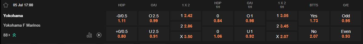 Tỷ lệ kèo Yokohama vs Yokohama Marinos
