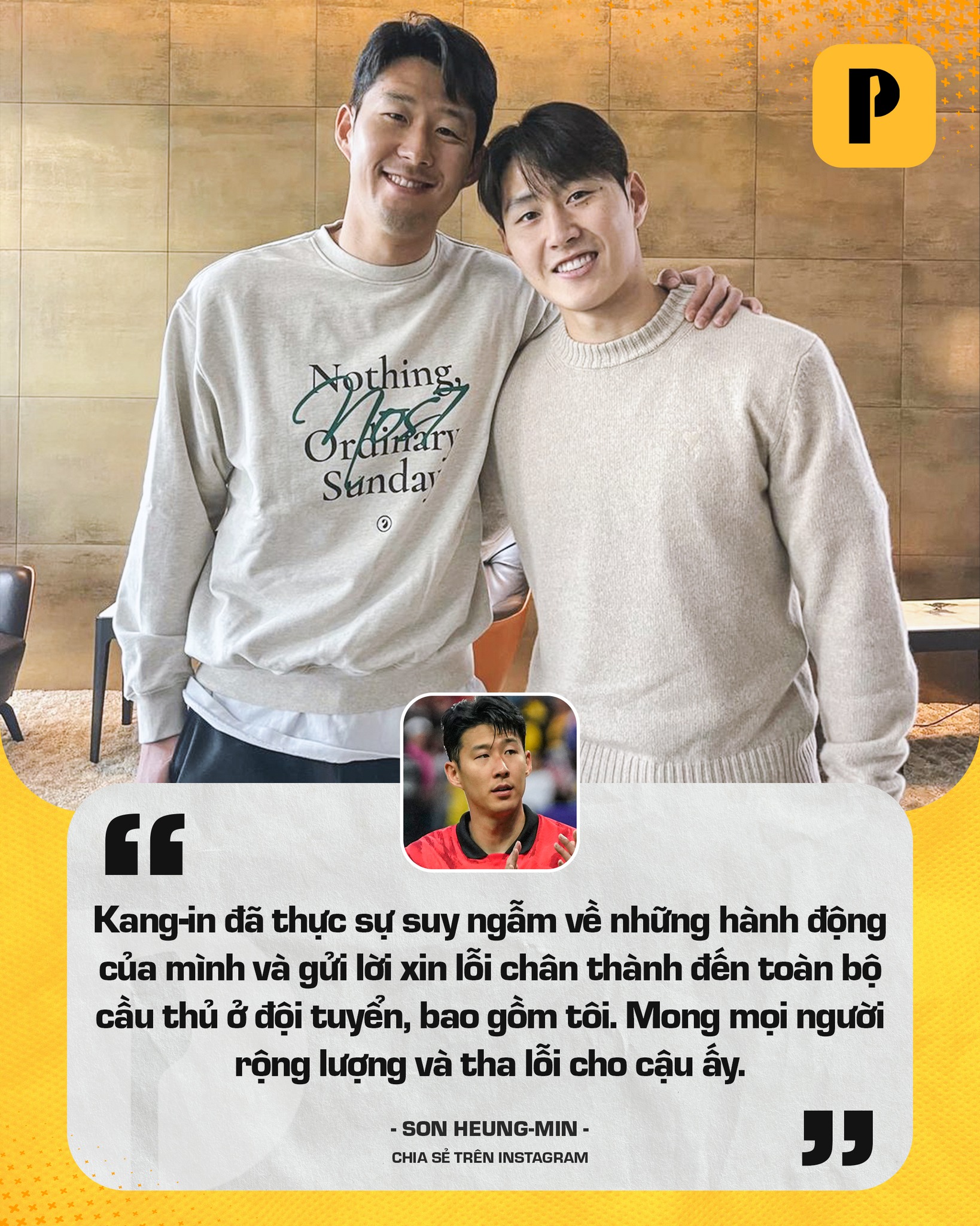 “Xin chào, tôi là Son Heung-min. Hôm nay tôi muốn nói về một chuyện hơi nặng nề và khó khăn một chút. Kang-in đã thực sự suy ngẫm về những hành động của cậu ấy và gửi lời xin lỗi chân thành đến toàn bộ cầu thủ ở đội tuyển, bao gồm tôi.