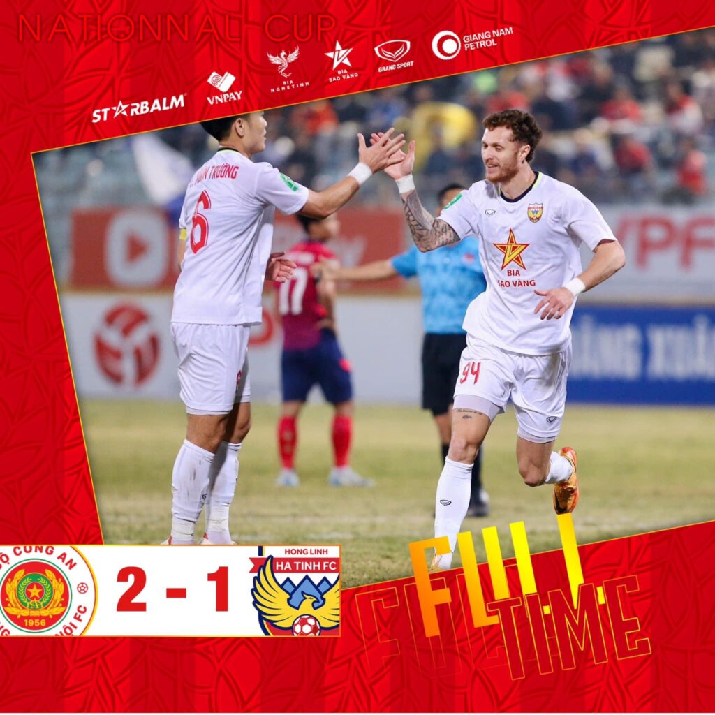 Tối 14/1, trên sân Hàng Đẫy, CLB Công An Hà Nội (CAHN) chính thức giành vé vào tứ kết Cúp Quốc gia 2024/25 sau chiến thắng nghẹt thở 2-1 trước đội khách Hồng Lĩnh Hà Tĩnh. Trận đấu kịch tính được định đoạt bởi bàn thắng muộn của Bùi Hoàng Việt Anh, khiến Hà Tĩnh lỡ cơ hội kéo trận đấu vào loạt sút luân lưu.