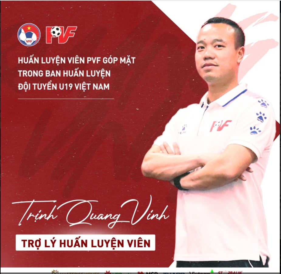 Theo đó, HLV Trịnh Quang Vinh – cựu danh thủ thuộc biên chế Trung tâm đào tạo bóng đá PVF – đã được bổ nhiệm vị trí trợ lý HLV tại đội tuyển U19 Việt Nam.