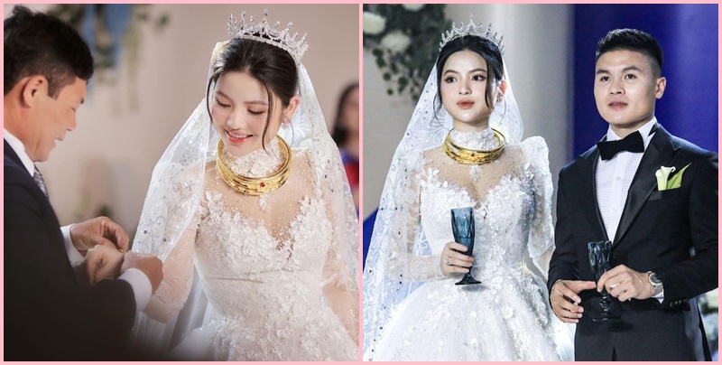 Tại lễ cưới tối 28/3, hình ảnh Chu Thanh Huyền đeo vàng đầy cổ, đầy tay đã thu hút nhiều sự chú ý. Theo tiết lộ từ chị dâu của Quang Hải, khi được anh trai Quang Phong và chị dâu Hoài Linh lên tặng quà, Chu Thanh Huyền còn cảm thán: “Nặng quá chị ơi, cứu em”.